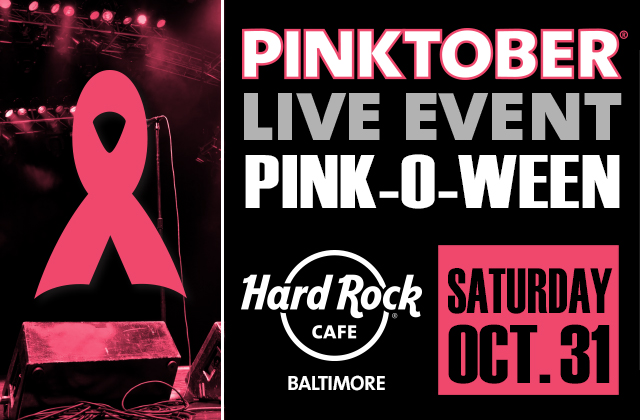Hard Rock Cafe Baltimore’s second annual PINK-O-WEEN event will close out PINKTOBER with a bang! Guests are invited to join in the Halloween fun at the downtown cafe, which will feature a live performance from local band Soundtown and cash prizes for the top three costumes.